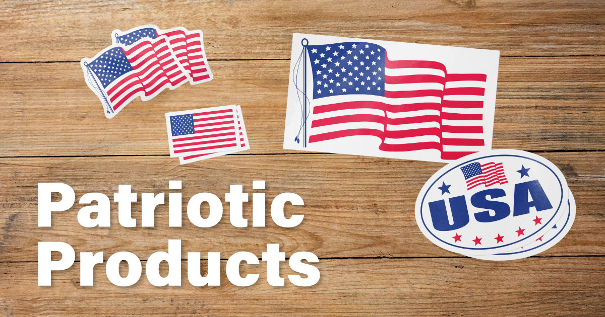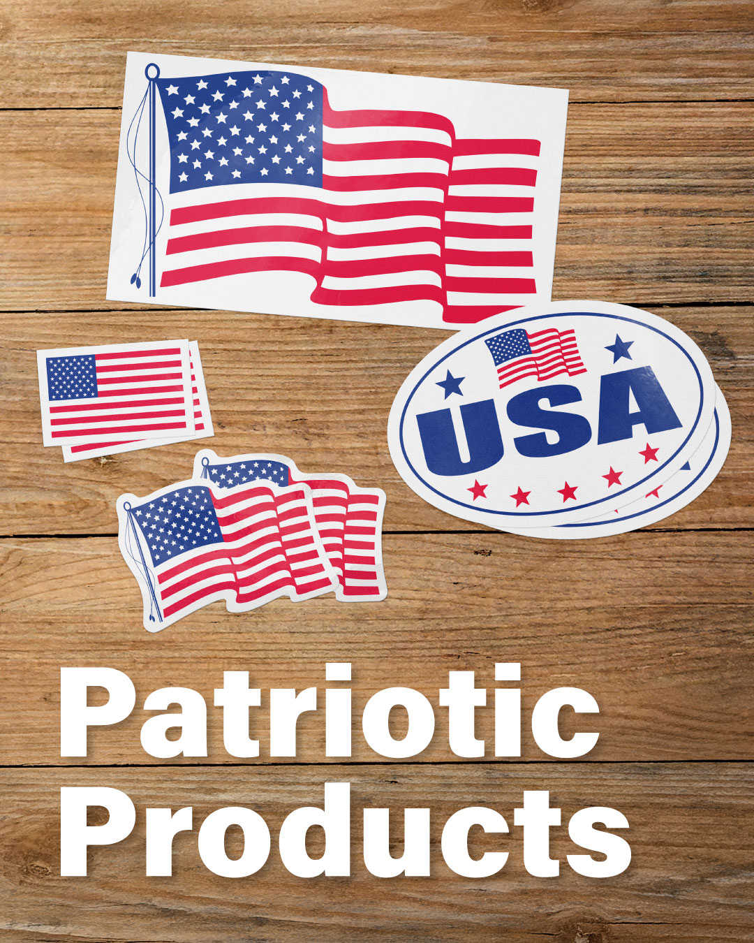 Promote American pride with patriotic products designed for events, promotions, and giveaways. Stock designs print on demand and support parades, direct mail, community outreach, and more.